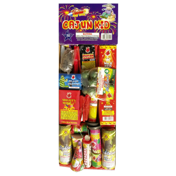 Kid's assortment (not just for cajuns). All a kid needs, no matter where they come from. This assortment keeps them busy with fireworks of all sorts. [ea c24]